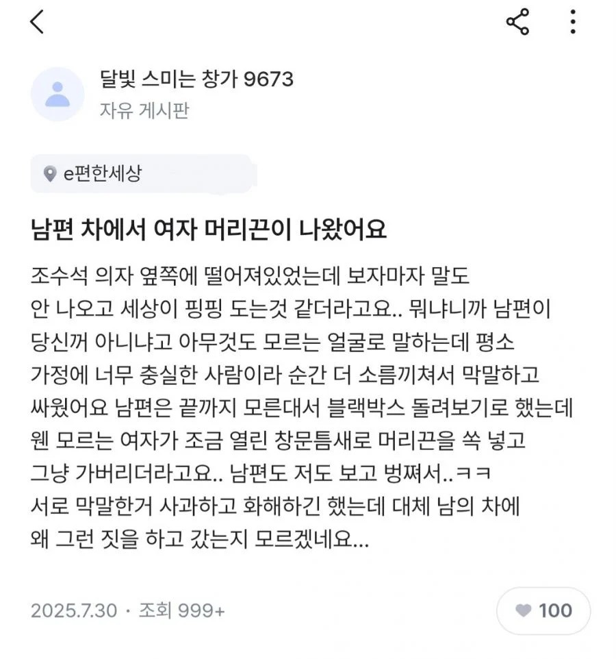 ³²Æí Â÷¿¡¼­ ¿©ÀÚ ¸Ó¸®²öÀÌ ³ª¿Ô¾î¿ä