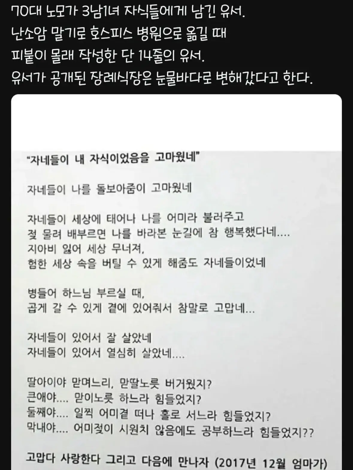 ³ë¸ð°¡ ÀÚ³àµé ¸ô·¡ Àû¾îµÐ À¯¼­