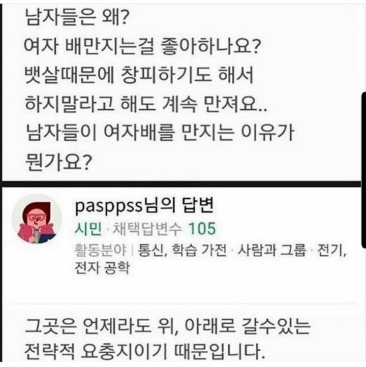 ³²ÀÚµéÀº ¿Ö ¿©ÀÚ ¹è ¸¸Áö´Â°É ÁÁ¾ÆÇϳĴ Áú¹®¿¡ ´ëÇÑ ´ä