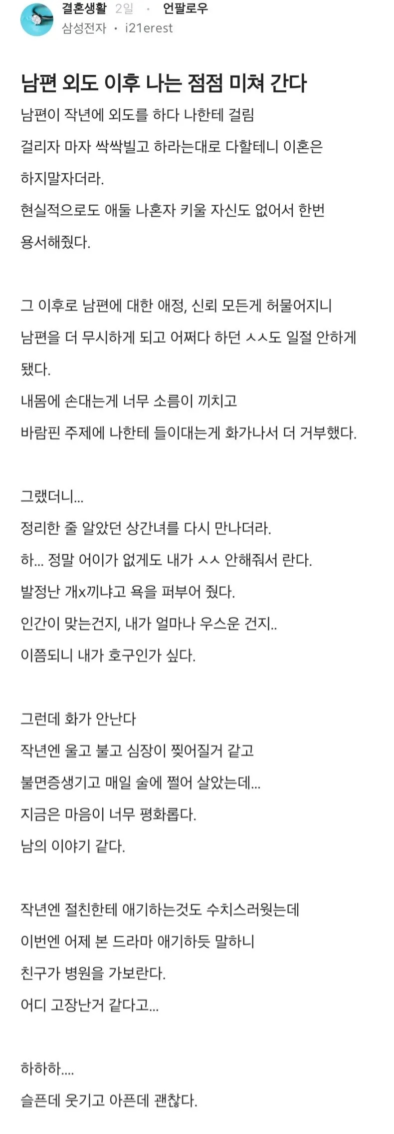 ¤ý¿©ÀÚ µ¿±â¿¡°Ô ûøÀå ¹Þ¾Ò´Âµ¥ Á×°í ½Í´Ù