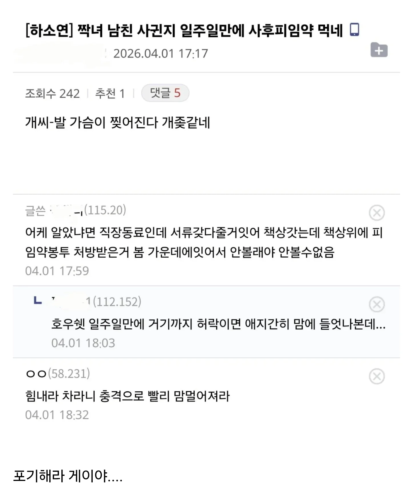 52566 ¿¬¾Ö ½ÃÀÛÀÌ ¾î·Á¿î mbti ¼øÀ§ DRSHIN 04-05 73 0 0