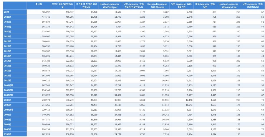 È¥ÀΰǼö - ¾Æ³» ÀϺ»ÀÎ + ³²Æí Çѱ¹¡¤Á¶¼±ÀÎ = 1,627