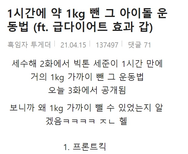 1½Ã°£ Çϸé 1kg »«´Ù´Â ¾ÆÀ̵¹ ¿îµ¿¹ý
