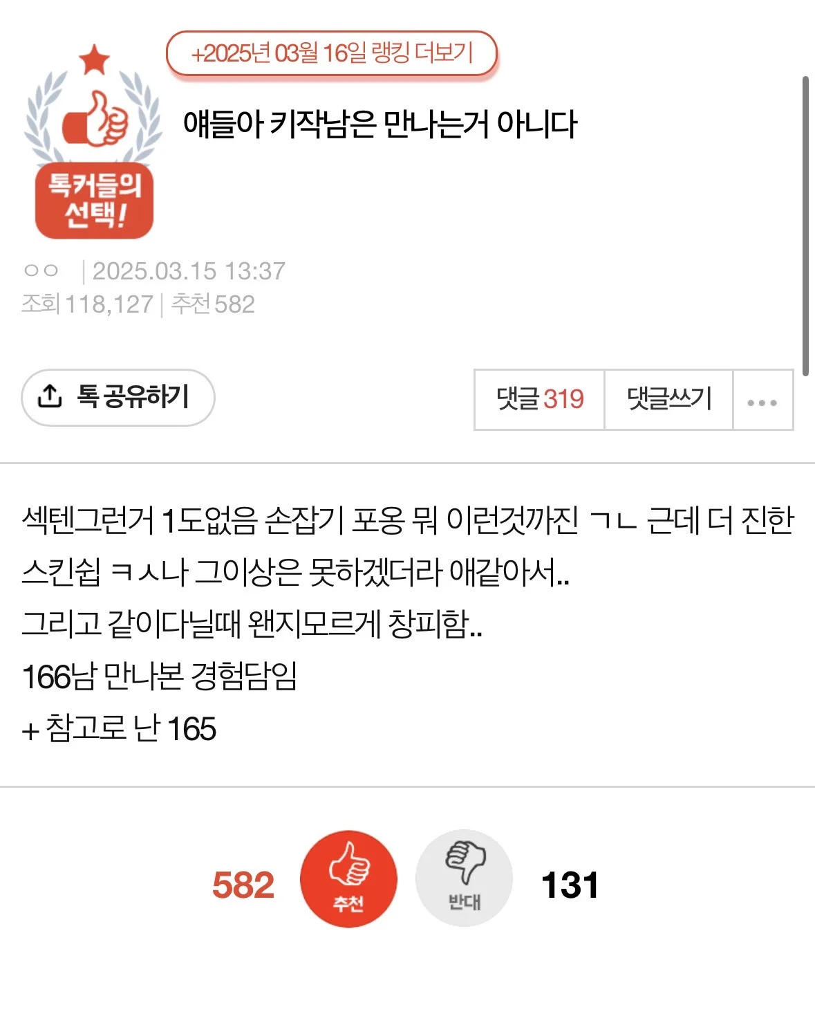 ŰÀÛ³²Àº Àý´ë ¸¸³ª¸é ¾ÈµÈ´Ù´Â 165 ¿©¼º