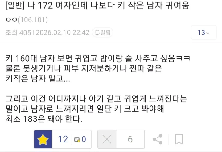 51222 ³ª 172 ¿©ÀÚÀε¥ ³ªº¸´Ù Ű ÀÛÀº ³²ÀÚ ±Í¿©¿ò zumuni 02-13 28 0 0