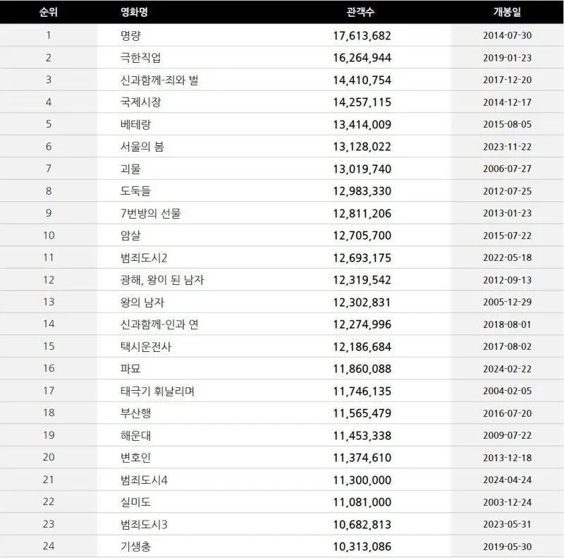 ¿Õ°ú»ç´Â³²ÀÚ 1346¸¸¸íÀ¸·Î ¿ª´ëÇѱ¹¿µÈ­ top 5