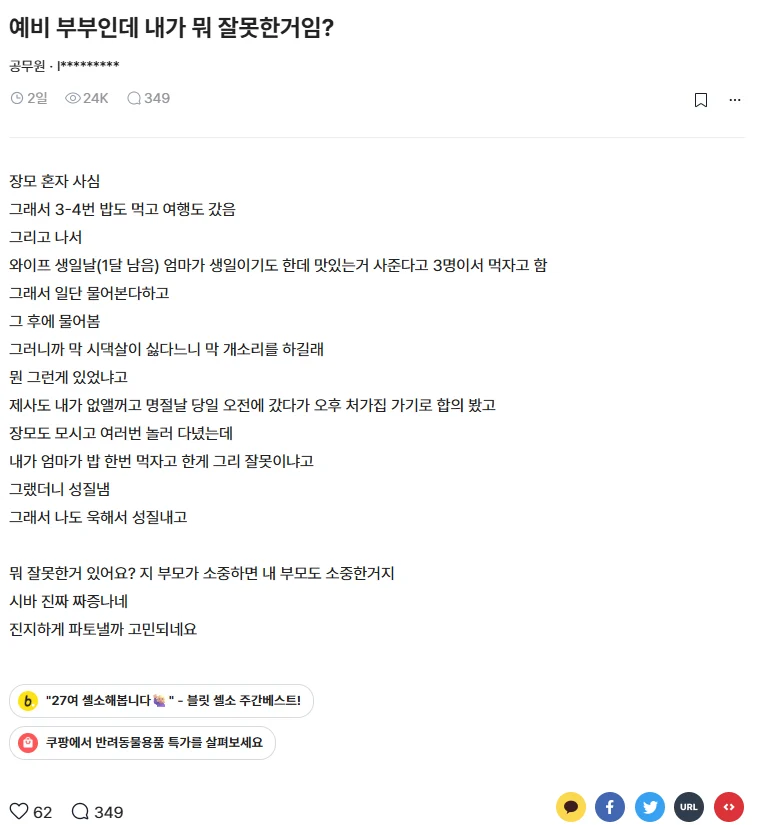 ¿¹ºñ ºÎºÎÀε¥ ³»°¡ ¹¹ À߸øÇÑ °ÅÀÓ?